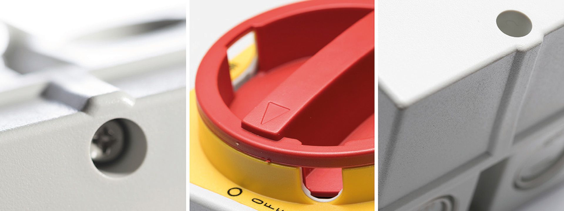 Die Betätigung der Hauptkontakte beim Ein- und Ausschalten erfolgt zwangsweise, da die vierpoligen Varianten mit nach- bzw. vorauseilenden Kontakten für den Neutralleiter ausgestattet sind. Alle Schalter besitzen eine PE-Klemme für den sicheren Anschluss des PE-Leiters.