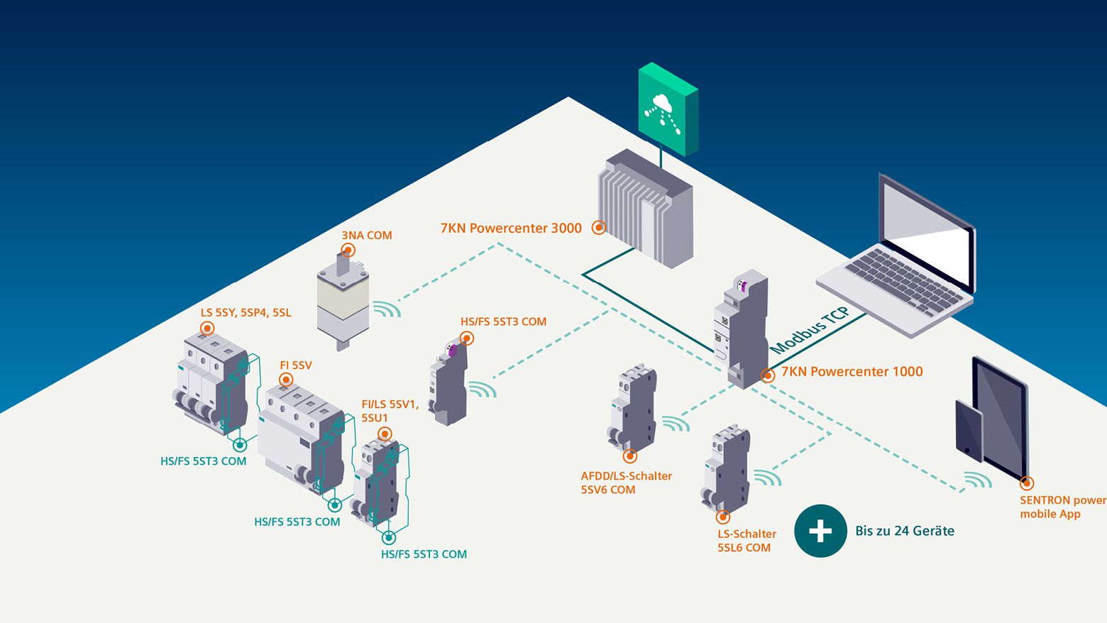 Mögliche Topografie von kommunikativen Schutzschaltgeräten.