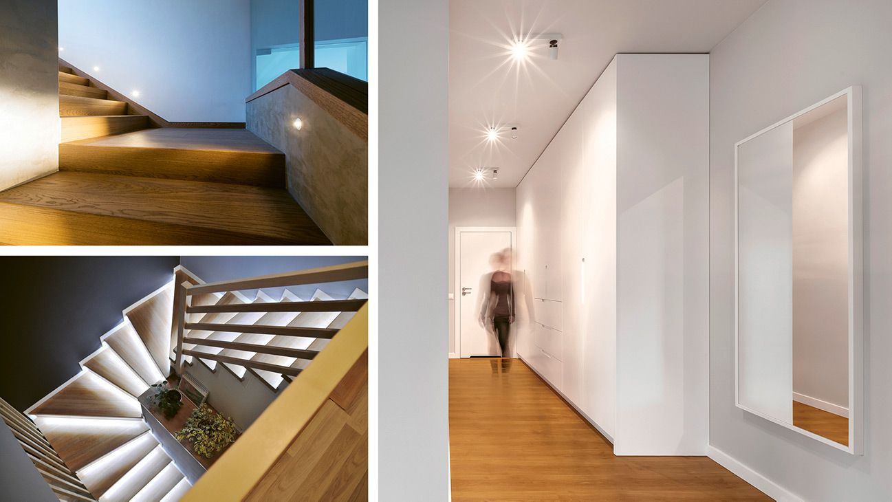 Doch Treppenhäuser bieten auch grosses gestalterisches Potenzial. Indirekte Beleuchtung entlang von Stufen, Handläufen oder Wandflächen erzeugt eine elegante, moderne Wirkung. Licht kann hier Bewegungen begleiten und Räume optisch öffnen. Besonders in mehrgeschossigen Wohnhäusern trägt eine harmonische Lichtführung dazu bei, dass Übergänge zwischen Etagen fliessend und angenehm wirken.