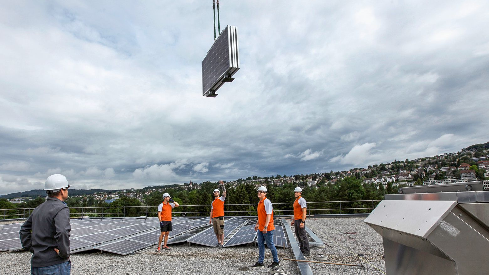 Bereits vor vier Jahren hat die Firma Otto Fischer das Gebäude ihres Firmensitzes an der Aargauerstrasse in Zürich vergrössert und energetisch saniert. Nun ist das Gebäude mit der Installation einer Photovoltaikanlage weiter modernisiert worden: 904 Photovoltaikmodule produzieren seit diesem Juni zirka 213 000 Kilowattstunden Strom pro Jahr. «Ich freue mich, dass wir nun von unserem eigenen, sauberen Solarstrom profitieren können», sagt Martin Oser, Leiter Ressort Informatik und Logistik der Firma Otto Fischer. Auch Christoph Thoma, der dem Verkaufsressort vorsteht, freut sich: «Die Anlage ist ein gutes Demo-Objekt, denn sie kann von unseren Kunden, den Elektrikern, als Praxisbeispiel gerne genauer unter die Lupe genommen werden.»