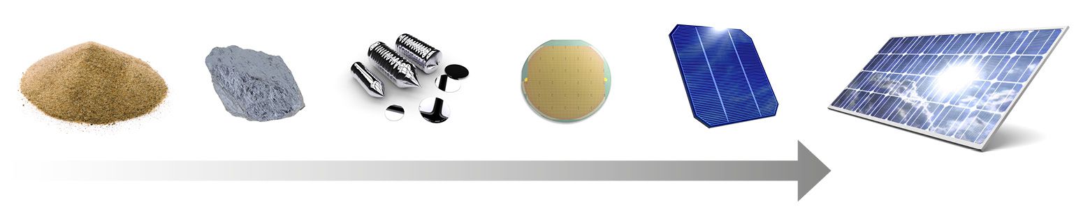 Ausgangsmaterial für die Herstellung einer Solarzelle ist Quarzsand, aus welchem der Rohstoff Silizium gewonnen wird. Und die weltweiten Reserven an Quarz, welcher typischerweise an seiner hellen Farbe erkannt wird, gelten als praktisch unbegrenzt. Denn die Sanddünen in den Wüsten dieser Erde bestehen zum grössten Teil aus solchem Quarzsand, welcher wiederum hauptsächlich aus Silizium besteht.