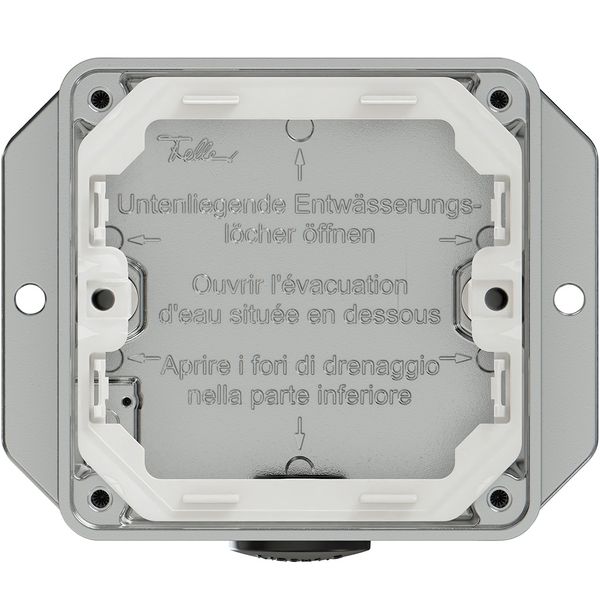 AP-Kopfzeile Feller ELEMENT, mit SNAPFIX®-Befestigungssystem, Anzahl der Einheiten vertikal 1, Anzahl der Einheiten horizontal 1, Montagerichtung horizontal und vertikal, Breite 111 mm, Höhe 93 mm, Tiefe 54 mm, halogenfrei, Werkstoffgüte Aluminium, Farbe Aluminium, Ausführung der Oberfläche matt, für frei wählbare Kombinationen, 1 Einführung