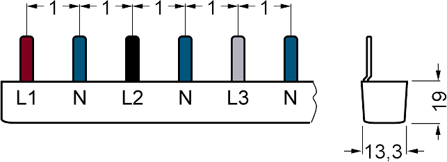 Kammschiene Siemens SENTRON 5ST3 4P 3Ph Stift 16mm² 210mm grau