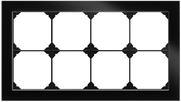 UP-Kopfzeile Feller EDIZIO.liv prestige, mit SNAPFIX®-Befestigungssystem, Anzahl der Geräteeinsätze vertikal 2, Anzahl der Geräteeinsätze horizontal 4, Montagerichtung horizontal, Breite 274 mm, Höhe 154 mm, halogenfrei, Werkstoff Glas, Oberflächenschutz unbehandelt, Ausführung der Oberfläche glänzend, Farbe schwarz, für frei wählbare Kombinationen, inkl. Grundmaterial
