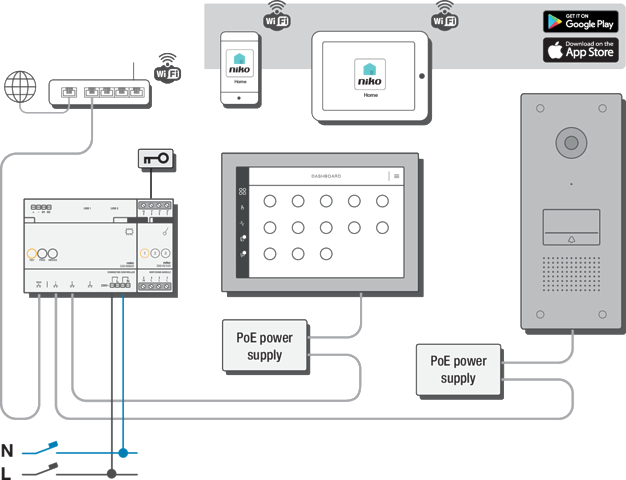 UP-Video-Aussenstation Niko Home Control, HD-Farbkamera (120°), gravierbares Namensschild aus PMMA, inklusive Unterputzdose, 1× beleuchtete Sensortaste, Lichtempfindlichkeit: 1 lx, Anschlusstechnik: IP-Verkabelung