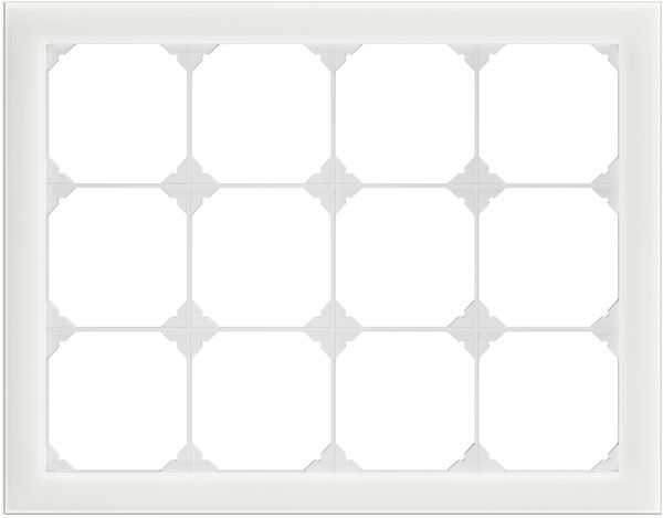 En-tête ENC Feller EDIZIO.liv prestige, avec système de fixation SNAPFIX®, nombre d'emplacements verticaux pour appareils 3, nombre d'emplacements horizontaux pour appareils 4, sens de montage horizontal, largeur 274 mm, hauteur 214 mm, sans halogène, matériau verre, protection de surface non-traité, finition de la surface brillant, couleur blanc, pour combinaisons librement sélectionnables, matériau de base compris
