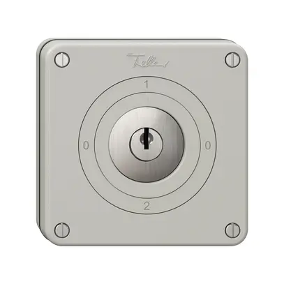 Interruttore rotativo NUPU Feller NEVO, con serratura di sicurezza e 2 chiavi, 240/400 V AC, con 4 posizioni di estrazione, con morsetti a vite, commutatore 2/1 L, KS, 0-1-0-2, profondità di installazione 40 mm