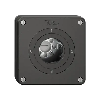 NUPU-Drehschalter Feller NEVO, für Sicherheitsschloss, ohne Zylinder, 240/400 V AC, mit Schraubklemmen, Einbautiefe 53 mm, Mehrfachumschalter 5/1 L, KS, 0-1-2-3