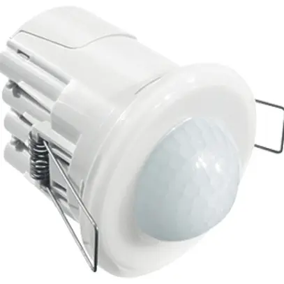 Rilevatore di presenza ESYLUX PD-CE, per montaggio a soffitto, custodia in policarbonato stabilizzato UV bianco, Ø 82×93.5 mm, profondità d'installazione 69 mm, apertura a soffitto Ø 68 mm, uscita di commutazione: normalmente aperta, non a potenziale zero, ingresso a pulsante, ingresso slave, comando a distanza con PDi/MDi, slave