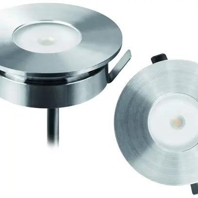 Lampada di terreno LED INS M. Schönenberger RAINDROP, classe di protezione III, grado di protezione IP65, tensione nominale 12 V, tipo di tensione DC, portalampada senza, corpo luminoso LED non sostituibile, potenza max. del sistema 1 W, flusso luminoso effettivo secondo IEC 62722-2-1 100 lm, colore della luce bianco, temperatura del colore 3000 K, grado di resa del colore 80-89, diffusore di luce lente/ottica/pannello diffusore, angolo di irraggiamento a fascio estremamente largo >80°, regolazione DALI, regolazione con push-button, materiale della scatola alluminio, materiale del diffusore vetro opaco/satinato, resistenza agli urti IK06, diametro esterno 40 mm, altezza/profondità 12 mm, diametro di montaggio 38 mm, altezza/profondità di inserimento 20 mm