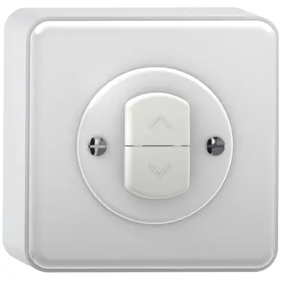 Contatto per tapparelle AP ABB Classic, 1-canale, con scatola AP 75×75×48 mm, quadro di copertura 75×75 mm, piastra di montaggio 70×70 mm, disco frontale, pulsanti