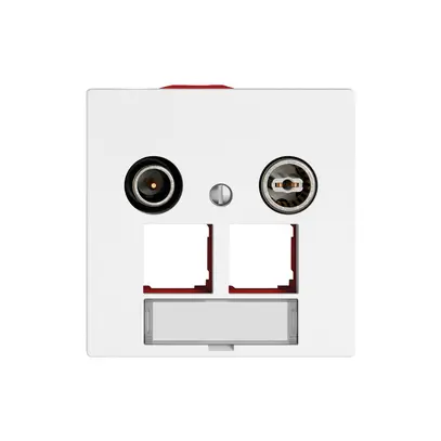 Prise multimédia TV-R Feller EDIZIO.liv EASYNET, avec système de fixation SNAPFIX®, prise de passage/prise finale, pour deux modules de raccordement RJ45 S-One