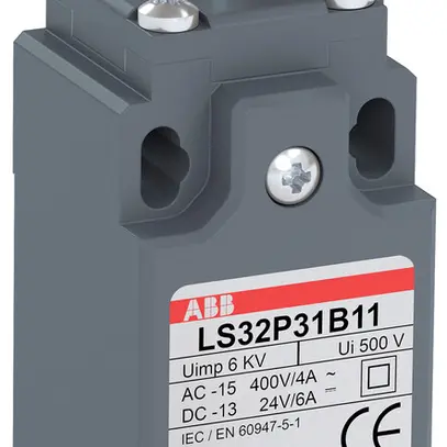 Interruttore di posizione ABB LS3, leva a rotella in materiale sintetico Ø 12.5 mm su bullone di pressione in acciaio, scatola in materiale sintetico UL-V0 rinforzato con fibra di vetro, velocità di azionamento max. 1 m/s, coppia di azionamento min. 7 N, coppia di azionamento di apertura forzata 24 N, 1 ingresso del cavo M16x1.5