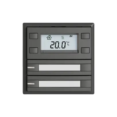 Poussoir RTH Feller EDIZIO.liv, avec système de fixation SNAPFIX®, avec RGB-LED rouge, vert, bleu, blanc, jaune, violet, et 2 couleurs utilisateur librement définissables, avec étiquette en papier, 2×touches, commande à 2 touches