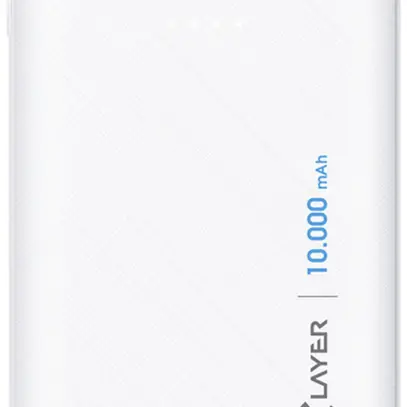 Batterie externe portable XLayer Micro 10000 mAh, sorties 2× USB-A 5 V DC / 2.1 A, raccord de recharge 1× Micro-USB 5 V DC / 2 A, 1× USB-C 5 V DC / 2 A, 91×64×22.5 mm, 200 g, blanc