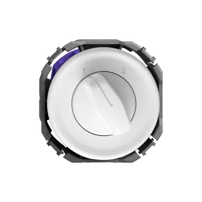 Interrupteur rotatif AWAG CA10.A220.Q.A.61, design Feller STANDARDdue, avec poignée rotative, inverseur, sans position 0, 1 pôle, fonction 1-2, inscription 1-2, angle de commutation 60°, 1 étage, disque frontal 53 mm pour alésage 50 mm, charge LED max: 200 W, compatible avec Feller SNAPFIX®