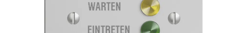 Inserto per stazione da porta Feller EDIZIOdue, placca frontale, materiale isolante, LED (rosso, giallo, verde), pulsante, buzzer, scritta: busy/waiting/entry/login