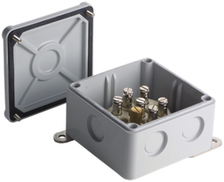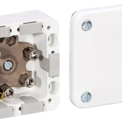 Scatola di derivazione Fixer, Duroplast bianco, TFI a 850 °C, coperchio avvitabile, 6 ingressi Ø 11 mm, per cavo TT ≤ 5×2.5 mm², con i morsetti, 3L+N+PE