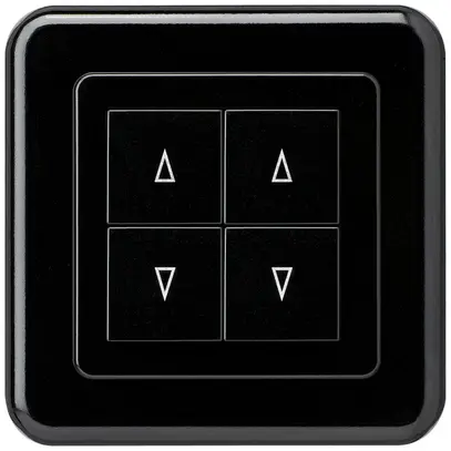 Poussoir double pour store ENC Hager basico C, plaque de recouvrement 86×86 mm, plaque de fixation 77×77 mm, plaque frontale 58×58 mm