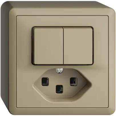 Combinaison interrupteur à poussoir + prise type 23 Feller EDIZIOdue, kit frontal avec bouton-poussoir 40×25 mm, interrupteur/contact à poussoir commutable (fonction de dépannage), bornes enfichables, non illuminable