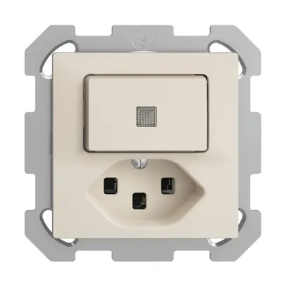 Combinazione pulsante luminoso con lente frontale (LED giallo) + presa tipo 23 Feller EDIZIOdue, set frontale con pulsante 40×25 mm, interruttore/pulsante commutabile (funzione di emergenza), set di illuminazione LED giallo 1.0 mA 209 972 000, morsetti a innesto, spia luminosa, commutabile sulla lampada di orientamento