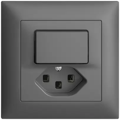 Combinazione interrutore a pulsante + presa tipo 23 Feller EDIZIOdue, set frontale con pulsante 40×25 mm, morsetti a innesto, illuminabile con set di illuminazione a LED colorato 1.0 mA serie 209 970 000 e set frontale serie 378 217 000 (pulsante con lente frontale) o serie 378 218 000 (pulsante con lente laterale)