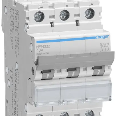 Disgiuntore Hager MCB, numero di poli (totale) 3, tensione nominale 415 V, caratteristica di intervento D, corrente nominale 32 A, potere di interruzione nominale Icu secondo IEC 60947-2 a 400 V 25 kA, larghezza in unità di suddivisione 3