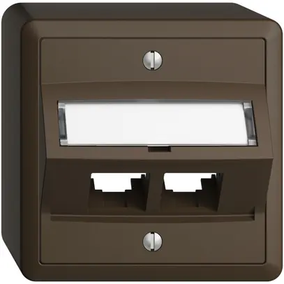 Kit di montaggio AP Feller EASYNET EDIZIOdue FX, cappa 74×74 mm, profondità 54 mm, placca frontale 60×60 mm, per due moduli di collegamento RJ45 S-One, uscita angolare, con inserto in carta