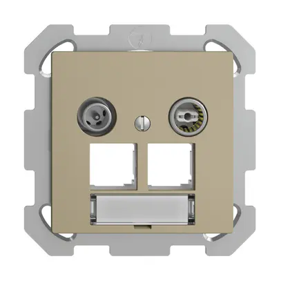 Presa multimedia INC Feller EDIZIOdue FM, EASYNET, presa terminale / presa passante, con resistenza di terminazione, con inserto in carta, attenuazione di schermatura di classe A (+10 dB), per moduli di connessione 2×RJ45 S-One, profondità d'installazione 33 mm, IP20, 77×77 mm, sand