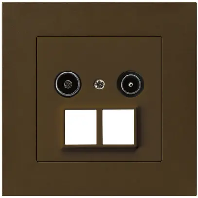 Prise d'antenne ENC Hager HMS kallysto.pro, R/TV, 2×IEC, avec découpe pour 2×RJ45, cadre de recouvrement 94×94 mm, plaque frontale 60×60 mm, en Duroplast, brun