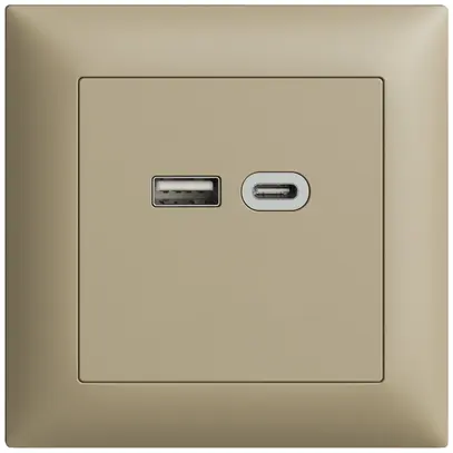 Presa INC USB 18W tipo A + tipo C Feller EDIZIOdue FMI, consumo di energia (Standby) max. 100 mW, con telaio di copertura 88×88 mm, placca di fissaggio 77×77 mm e placca frontale 60×60 mm