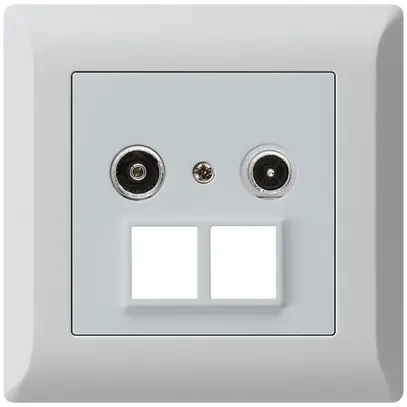 Prise multimédia ENC Hager kallysto.line HMS, R/TV, cadre de recouvrement 92×92 mm, plaque de fixation 77×77 mm, plaque frontale 60×60 mm, gris clair