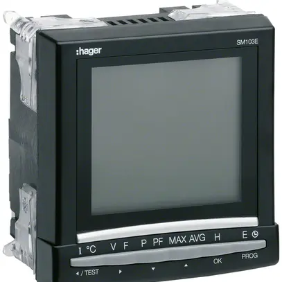 Apparecchio di misura multifunzione INS SM103E, 96×96×60 mm, display LCD, campo di tensione 18…700 V AC diretto, fino a 500 kV con trasformatore di tensione /60, /100, /110, /115, /120, /173, /190 V AC, campo di frequenza 45…65 Hz, campo di corrente 10 mA…9995 A con trasformatore di corrente /1 o /5 A, -10…55 °C, IP30