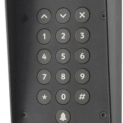 Station de porte AP Net2 Entry, avec boîtier anti-intempéries, Power over Ethernet (POE): Max. 12.95 W, système de caméra: I/R couleur, avec éclairage, écran: LCD rétro-éclairé, lecteur de proximité: Hitag2, EM 4102/01 et Mifare, classe de protection: IP55, résistance aux chocs: IK8, température de fonctionnement: -20…50 °C