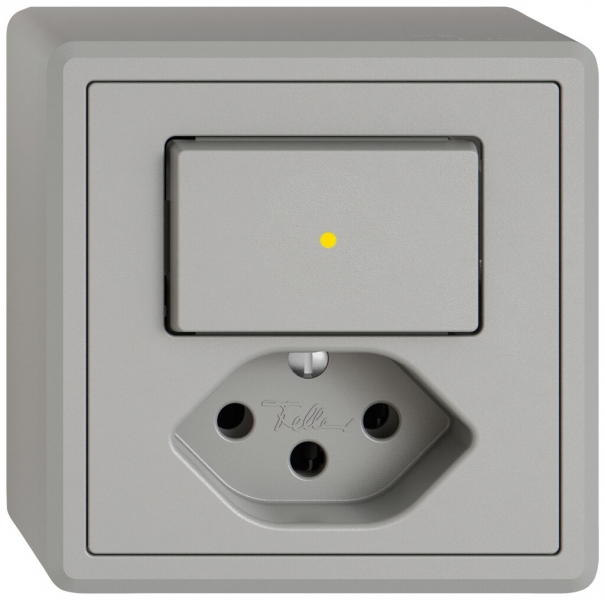 Combinazione pulsante luminoso con lente frontale (LED giallo) + presa tipo 13 Feller EDIZIOdue, set frontale con pulsante 40×25 mm, interruttore/pulsante commutabile (funzione di emergenza), morsetti a innesto, set di illuminazione LED giallo 1.0 mA 209 972 000, spia luminosa, commutabile sulla lampada di orientamento