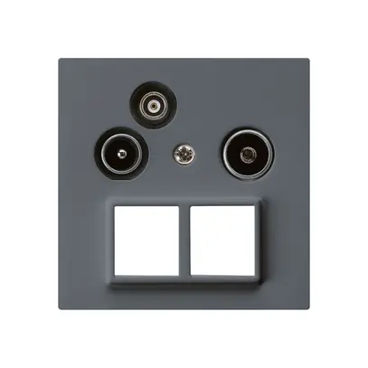 Presa per antenna INC TV-R-data Hager HMS kallysto, inserto per combinazione, 2×IEC, 1×MiniDat, con cut-out per 2×RJ45, range di frequenza percorso di ritorno 5…65 Mhz, placca frontale 60×60 mm, Duroplast, antracite