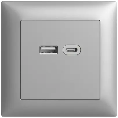 Presa INC USB 18W tipo A + tipo C Feller EDIZIOdue FMI, consumo di energia (Standby) max. 100 mW, con telaio di copertura 88×88 mm, placca di fissaggio 77×77 mm e placca frontale 60×60 mm