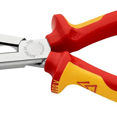 Pince pour téléphone KNIPEX, en acier électrique au vanadium, forgé, trempé à l’huile, chromée, pointes de précision élastiques et supportant la torsion, becs demi-ronds, longs, effilés, intérieur des mâchoires strié, avec tranchants (dureté env. 61 HRC), pour fils souples, fils semi-durs jusqu'à Ø 3.2 mm, fils durs jusqu'à Ø 2.2 mm, poids 206 g