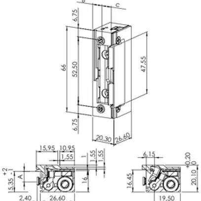 Ouvre-porte pour protection contre le feu BSW F3000-TK, pour contact impulsionnel 10…24 V AC/DC et régime permanent 12 V DC (11.5…13 V DC), hors-tension fermé, guide de clenche top, plage de réglage de clenche 3 mm, profondeur du verrouillage de clenche 5.1 mm, force de fermeture 3230 N, préchargement de clenche ≤ 250 N (12 V AC) / ≤ 360 N (24 V AC) / ≤ 50 N (12 V DC stabilisé), diode bipolaire de protection CEM