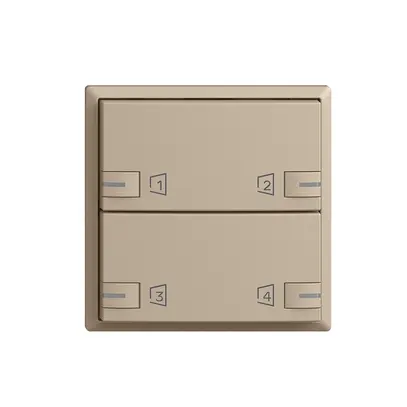 Kit de montage Feller EDIZIOdue zeptrionAIR F, permet la commande de 4 scènes zeptrionAIR via WLAN, se monte sur le module intermédiaire zeptrion WLAN 2K (3340-2-B.ZEP) ou sur l'intérieur de fonction station centrale ou secondaire 3320, avec LED-RGB, 2× poussoir, 2× commande de scène zeptrionAIR sur 4 touches Smart