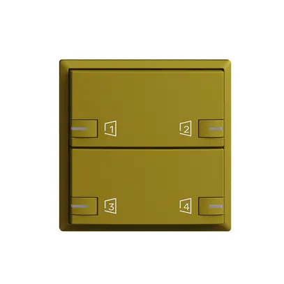 Kit di montaggio Feller EDIZIOdue zeptrionAIR F, permette di comandare 4 zeptrionAIR scenari tramite WLAN, montato sul modulo intermedio zeptrion WLAN 2K (3340-2-B.ZEP) o sulle unità centrale/di espansione Inserto funzionale 3320, con LED RGB, 2× pulsante, 2× azionamento zeptrionAIR Scena su 4 Smart button
