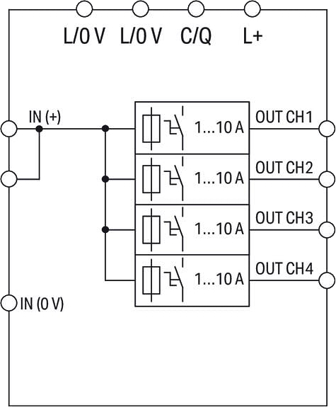 Disgiuntore elettronico WAGO IO-Link, sovracorrente monofase possibile, funzione sovracorrente di tensione continua, campo di misura corrente 1…10 A, 4 canali, 1×interfaccia IO-Link, con segnalazione, corrente nominale regolabile 1/2/4/6/8/10 A, display LED per ogni canale, modo di montaggio guida DIN 35 mm, grado di inquinamento 2, classe di protezione III, IP20